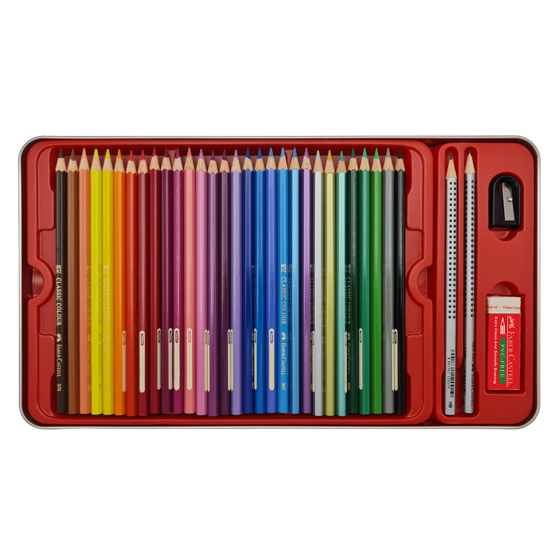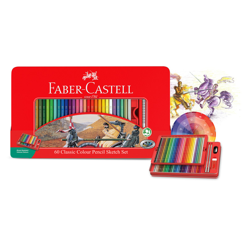 برند فابر-کاستل طراحی یک شرکت آلمانی است که از سال 1761 در زمینه تولید محصولات نقاشی فعال است، همیشه لازم نیست برای آنکه در کار نقاشیمان جذابیت و تنوع به وجود آوریم دنبال طرحهای عجیب و متفاوت بگردیم، بلکه با انتخاب یک ابزار نقاشی حرفه ای و خاص مثل مداد رنگی 60 رنگ کلاسیک فابر-کاستل مدل CLASSIC Skerch میتوانیم به نتیجهی مدنظرمان دست پیدا کنیم، نوک مدادهای این بسته بسیار محکم است و حتی با وارد شدن فشار زیاد مقاوم است و با بهره گیری از تکنولوژی SV که اختراع فابر کاستل است تولید شده است، به همین دلیل است شما میتوانید بدون از دست دادن تمرکز و اتلاف وقت برای تراشیدن نوک شکستهی مداد، بهسرعت نقاشی کنید. علاوهبر60 عدد مداد رنگی متنوع و کاربردی، 2 عدد مداد مشکی HB ، یک پاککن و یک عدد تراش در جعبهی این محصول قرار داده شده است، پاک کن درون جعبه عاری از مواد PVC است ، همچین با داشتن یک جعبه فلزی علاوه بر نگهداری بهتر مداد ها ، زیبایی را نیز به همراه دارد، بدنهی مداد رنگی 60 رنگ فابر-کاستل مدل Sketch از چوب درختان جنگل پایدار و مطابق با استانداردهای حفاظت از محیط زیست، این مداد رنگی کاملا ارگونومیک طراحی شده تا علاوه برقابلیت خوشدست بودن، مانع از خستگی انگشتان دست ، حین کار شود، مداد رنگی کلاسیک فابر کاستل کاملا غیر سمی و بدون اسید است و با طیف رنگی متنوع و جذابش، نقاشی کردن را به کاری لذتبخش و آسان تبدیل کرده است.